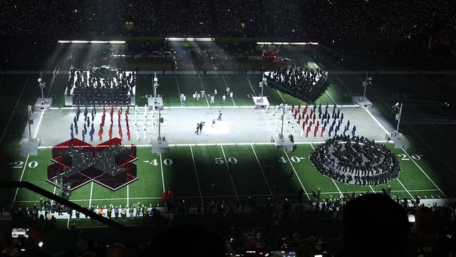 One of the standout moments came when the stage transformed into a PlayStation tribute, displaying the cross, circle, triangle, and square symbols from the brand’s controller. As the lights dimmed, “Game Over” appeared on the stadium screen, fueling speculation that Lamar was using this as a final statement in his beef with Drake.