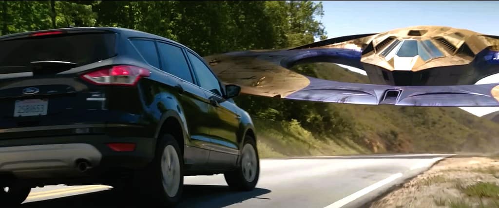 While driving, Sakaar’s alien ship appears in front of Bruce and Jennifer, seeing that scene…many people are confused that maybe it is the ship of the Grand Master but from my point of view, it is not the Grand Master’s ship. If we look carefully: This ship is very different from the Grand Master’s ship.